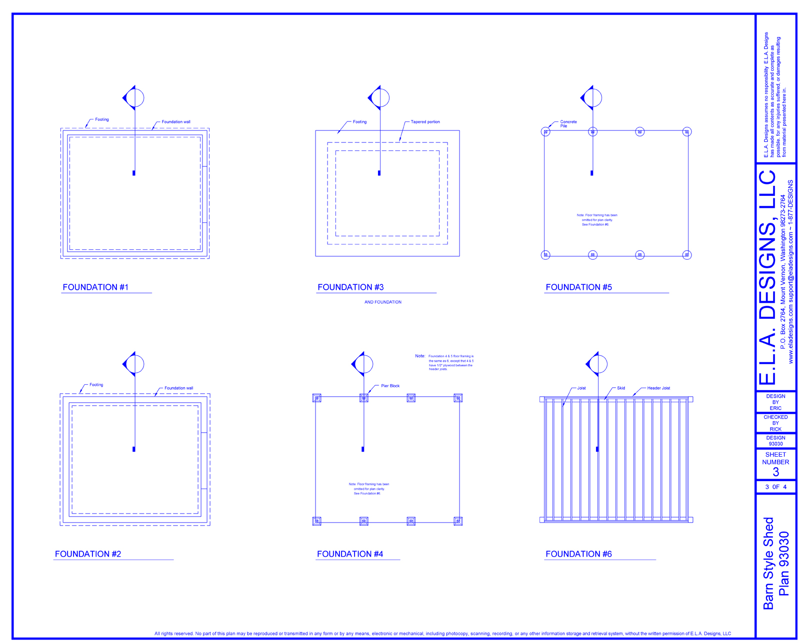 E.L.A. Designs, LLC Plan (93030) jpeg Drawing Files The Detailing, Scale and Dimensioning are omitted in these jpeg drawings to safe guard the copyright. The purchased plans will include all of the omitted items.